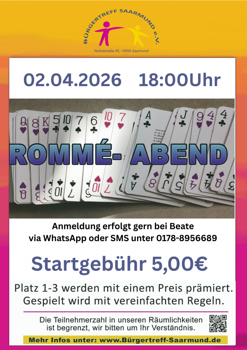 05.02.2026 – Rommé-Abend im Bürgertreff Erstellt von SvSch. am 19. Januar 202615. Februar 2026 Weiterlesen